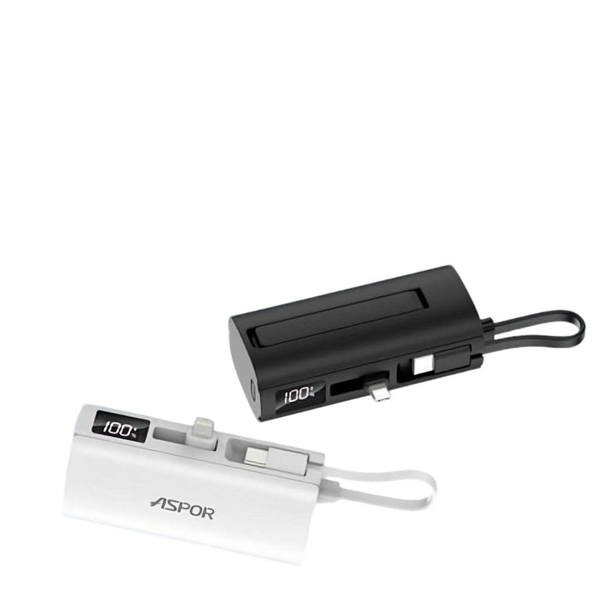 Aspor A351 2IN1 portable mini 5000mAh power bank with iPhone and Type-C cables